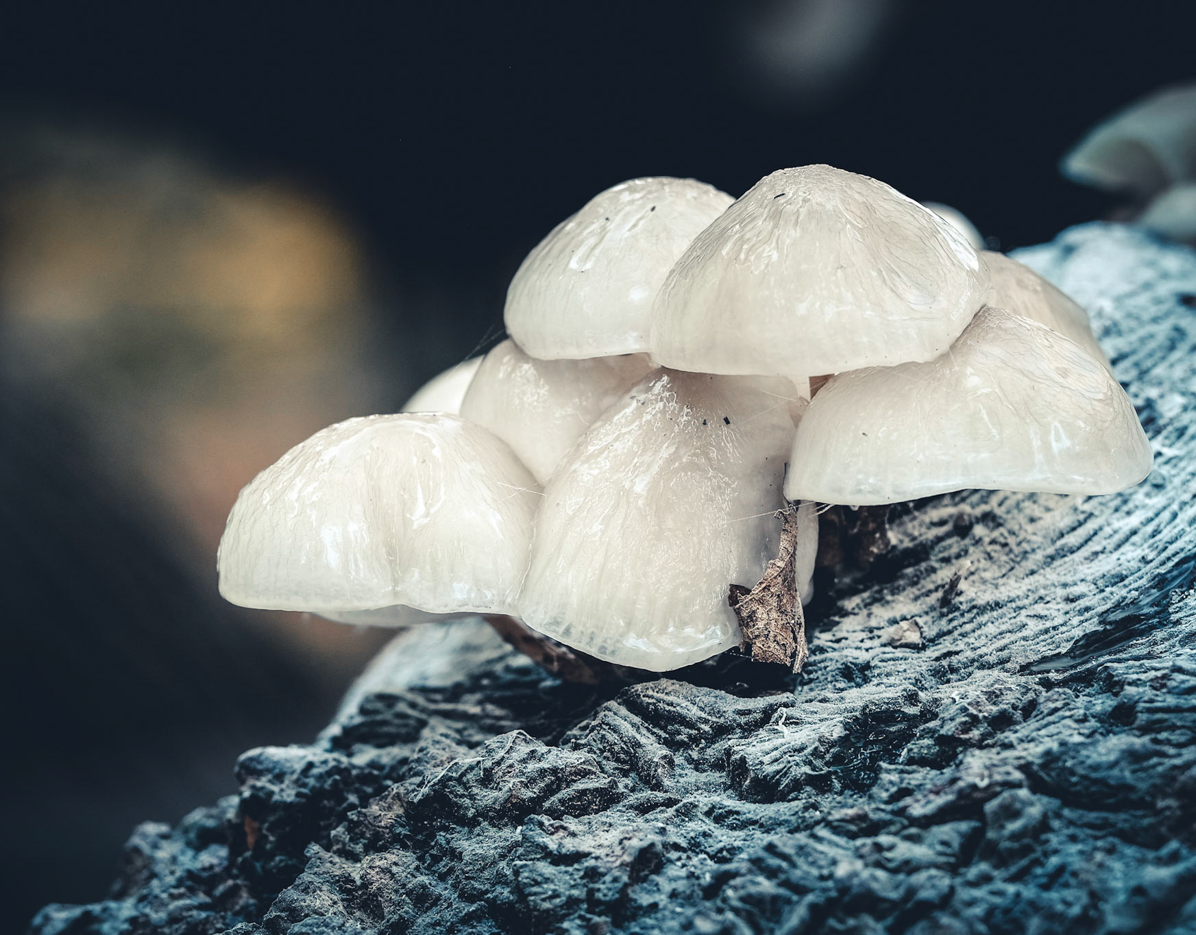 These tiny mushrooms shine like they are made of porcelain.